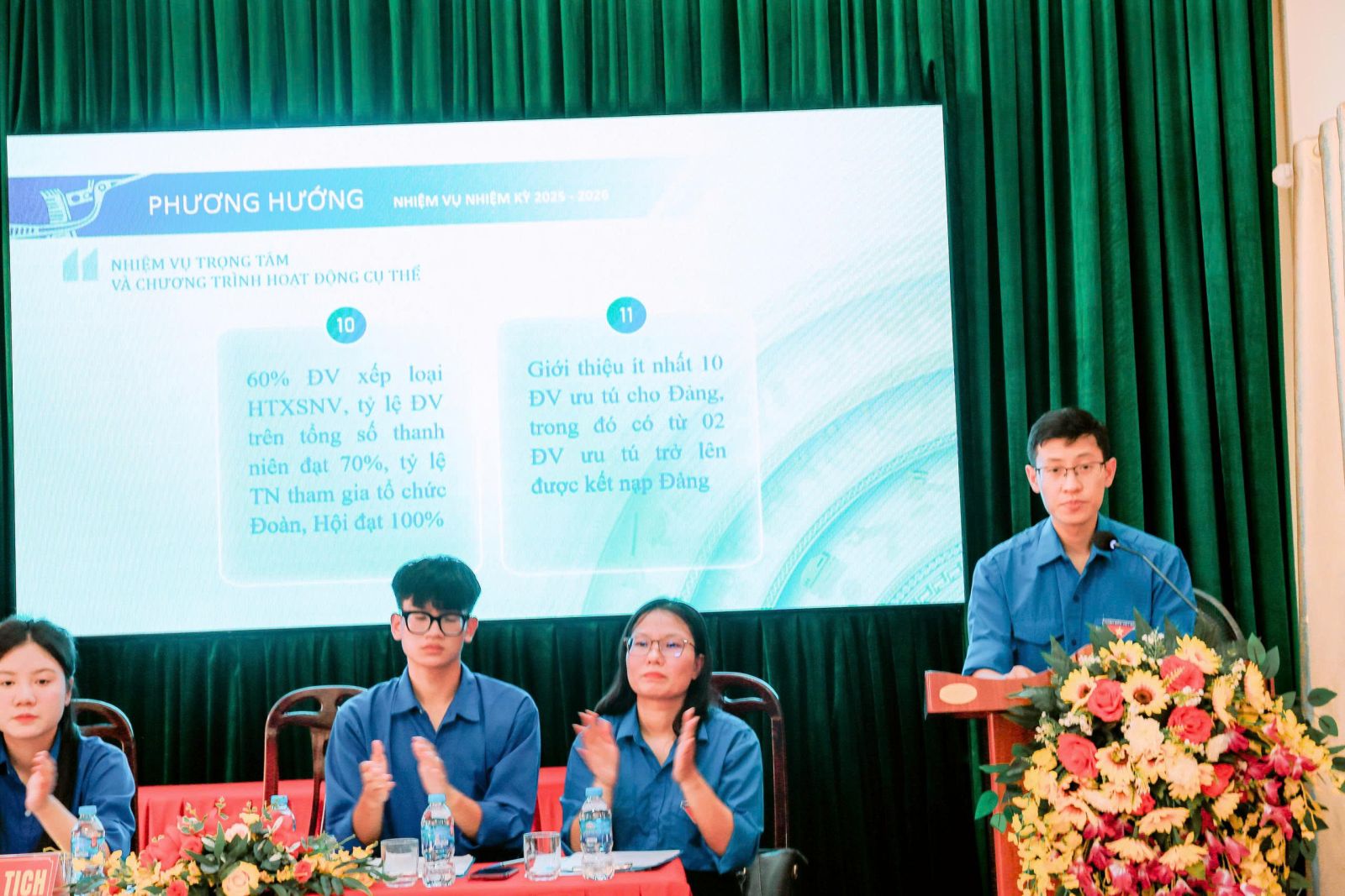 Đồng chí Hoàng Văn Toàn – Đảng ủy viên, Bí thư Đoàn phường Phù Vân phát biểu chỉ đạo Đại hộiĐại hội được lắng nghe ý kiến phát biểu chỉ đạo của đồng chí Hoàng Văn Toàn – Đảng ủy viên, Phó Chủ tịch Uỷ ban MTTQ Việt Nam phường, Bí thư Đoàn phường; cũng như thầy Lương Văn Dương – Bí thư Đảng bộ, Hiệu trưởng Nhà trường đã biểu dương, ghi nhận những kết quả đạt được của Đoàn trường trong nhiệm kỳ qua; đồng thời, mong muốn rằng với sức trẻ và lòng nhiệt huyết của tuổi trẻ trong nhiệm kỳ 2025 – 2026 công tác Đoàn và phong trào thanh niên trường học Đoàn trường THPT A Phủ Lý sẽ gặt hái được nhiều thành công hơn nữa.