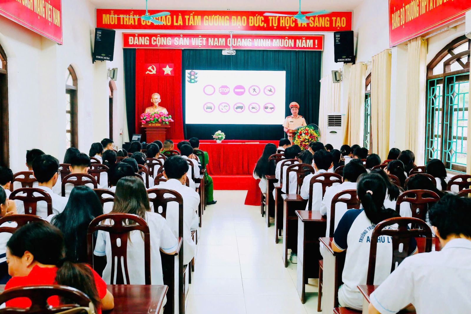 Tổ chức Ký cam kết thực hiện ATGTThông qua công táctuyên truyền, ý thức chấp hành các quy định của nhà trường, chấp hành pháp luật của học sinh đã có những chuyển biến rõ rệt. Chất lượng giáo dục toàn diện ngày càng được nâng cao. Năm học vừa qua, nhà trường đã có 100% học sinh lớp 12 đỗ tốt nghiệp THPT. Nhiều học sinh tham gia kỳthi học sinh giỏi văn hóa lớp 11, lớp 12 ở các bộ môn đạt thứ hạng cao.