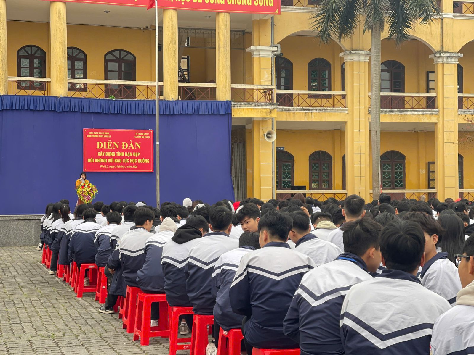 Học sinh trao đổi, bày tỏ ý kiến trong Diễn đàn Xây dựng tình bạn đẹp – Nói không với bạo lực học đườngCũng trong tháng 3 -2025, Đoàn trường THPT A Phủ Lý kết hợp với Tổ tư vấn tâm lý và công tác xã hội tổ chức Diễn đàn xây dựng tình bạn đẹp – Nói không với bạo lực học đường. Tại diễn đàn, các em HS đã được tìm hiểu những quy định của pháp luật về phòng, chống bạo lực học đường. Từ đó, các em có thể chung tay phòng tránh bạo lực học đường; xử lý tình huống để ngăn chặn bạo lực học đường hoặc tham gia giải quyết, đấu tranh với các hành vi bạo lực học đường.